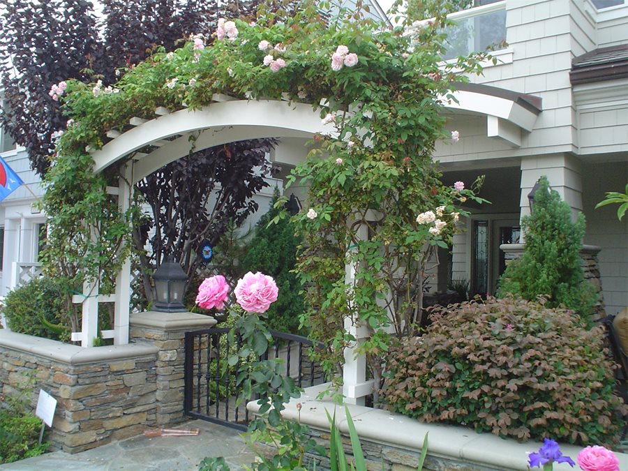 “The style of the arbor is dependent on the architecture of the home and the function of the arbor. Knowing these two factors will narrow the choices,” she says. “Special attention should be made on selecting materials for the arbor if vines or other plant material will be growing on the arbor, or if there will be hanging pots. The arbor needs to be able to hold up the weight of the planting materials or plant pots as well as hold up to weather over time. If the main purpose of using the arbor is for growing vines, fruits, etc., then using a vinyl material would work well. If the arbor is mainly a decorative entrance redwood, cedar or a pressure treated wood can make a beautiful entry statement. If wood is the desired material, then one should consider that the lower portion of the arbor will be underground so using a pressure treated wood for this portion of the arbor would be important.” - Do select plants for the arbor prior to construction.