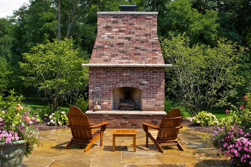 Outdoor fireplaces with brick veneer are driven by two factors: architecture and region. New England and the Deep South are strong users of brick in homes of all kinds. Brick homes appear elsewhere too and whenever there is existing brick on the home it makes sense to extend the same brick into exterior structures. The key is to find brick that matches the home, which can be a challenge with some of the 1970s, manufactured used brick which may no longer be available.