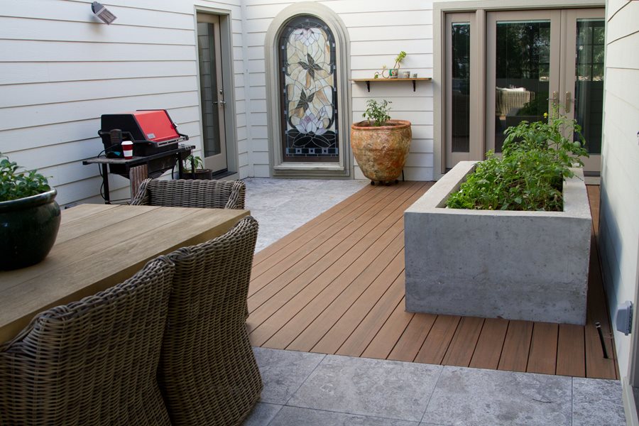 Each decking line has different characteristics as well as different colors and styles. If you are concerned about slip-resistance, consider a style that has deeper graining. However, if you have heavy foot traffic on your deck, deeper graining can make the deck harder to clean. Once you’ve had a chance to look at some of the different options in composite decking, talk with your contractor about budget, the style of your architecture, how you plan to use the deck, and your personal tastes. Your decking professional can help steer you towards the line of decking that will best suit all of those factors.