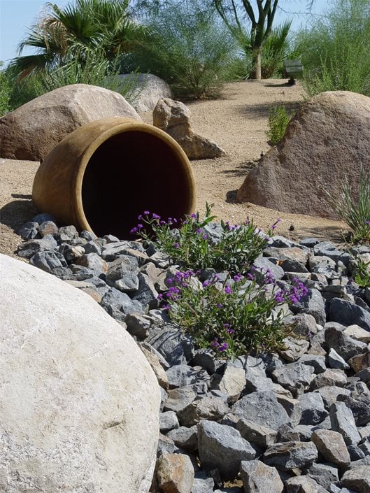 In those 1970s gravel landscapes, the key was to lower maintenance by using gravel to block weed growth. Back then thick black plastic was laid out on bare ground, and the gravel spread on top. It wasn't long before the plastic broke down and weeds came up through the cracks. Today woven weed barrier fabric is proving a far superior underlayer for gravel. It allows air and water to go down through to the soil, while blocking light so weeds don't sprout. When plants were integrated into the plastic and gravel system, problems arose because rain water could not enter the root zone of new or existing plants. The plastic also created an anaerobic condition in the soil where lack of oxygen caused it to literally ferment. The result was dead plants, both new and existing.