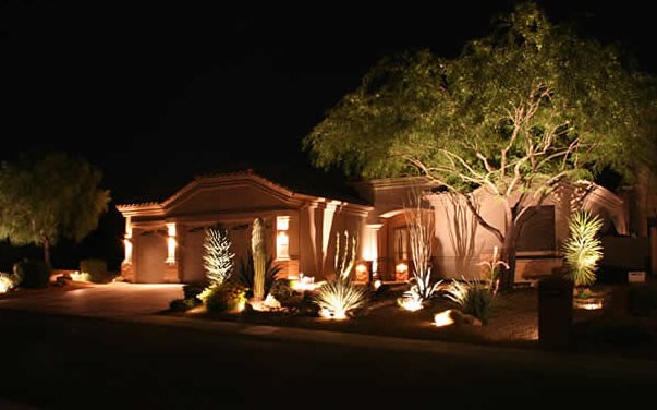 - Crosslighting is when you eliminate shadows by lighting a focal point from both sides. “Saguaros, agaves, and boulders look incredible when crosslit,” says Wilcoxson. “You can even light up the entire canopy of a tree this way.”