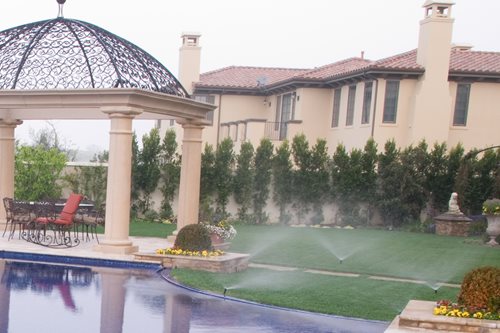 A well designed sprinkler system goes hand in hand with good landscape design and plant selection. It is equally important to zone plantings by their irrigation requirements as it is to separate sun plants from shade plants.