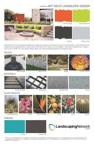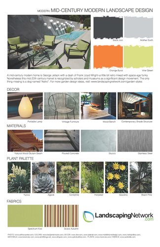 Learn more about the bold geometry and retro styles of modern landscape design, and download one of the following three style sheets for design ideas.
