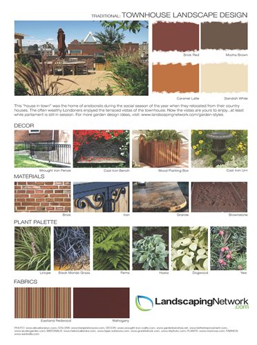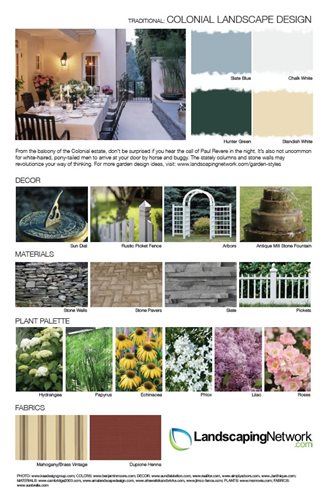 Read about traditional landscape design and view the hallmarks of this design style in the following five style sheets.