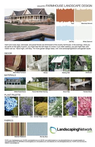 Learn about country landscape design and download the following four design sheets illustrating this quaint and charming style.