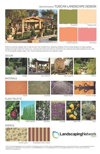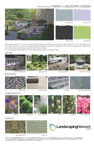 Download and print all 21 landscape styles featured on this page. The collection is divided into five themes: Mediterranean, Traditional, Tropical, Country and Modern.