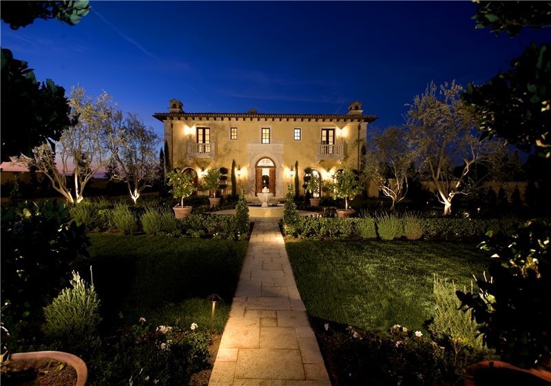 Mediterranean Formality When you think formal gardens, Italy may spring to mind. This Tuscan-inspired villa in Southern California puts a Mediterranean spin on formal garden design. A straight pathway draws the eye towards the grand house, only to be stopped briefly by a stone fountain. In ground plantings as well as potted citrus trees are arranged in a fashion that also funnels the eye to the home’s front door. Straight edges and long sightlines are a trademark of formal design.