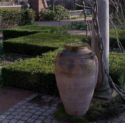 Antique Olive Jars Once predominantly used to store olive oil in countries such as Italy, Spain, and Turkey, antique olive jars now serve as unique elements in a garden setting such as this one in the Chicago Botanic Garden.