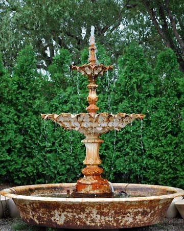 Multi-tiered Fountains Multi-tiered fountains, such as this antique French cast iron triple-tier fountain with basin from Detroit Garden Works, make for an impressive centerpiece in a garden.