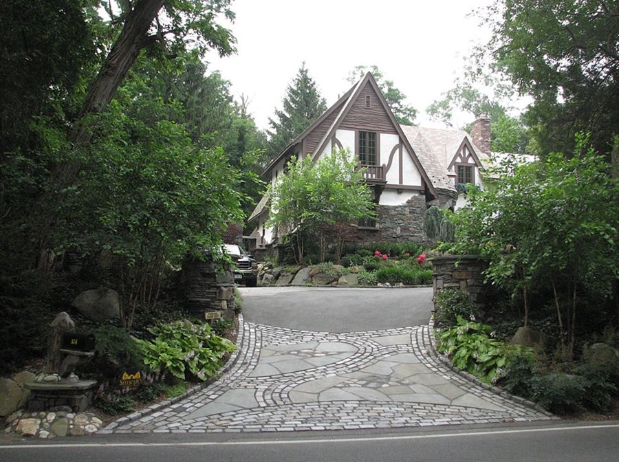 - Ideas for accenting a driveway with decorative borders, bands and aprons made of flagstone, pavers, or brick.