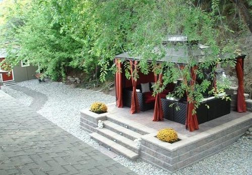 - Choosing simplistic and natural paving materials for a Japanese garden, including gravel, natural stone and exposed-aggregate concrete.