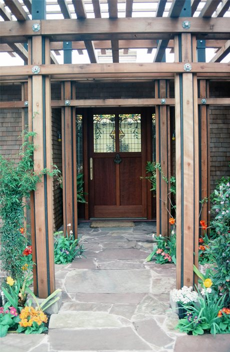 - Ideas for "softening" the edges of paved patios and walkways by avoiding straight lines, emphasizing free-form and organic shapes, and using ground covers to disguise the edges.