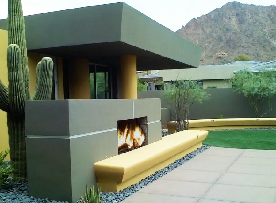 One of the main goals of modern design is to create contrast. For example a large massing of ornamental grasses pops out against a grey concrete wall, orange cushions draw your eye when placed on otherwise simple patio furniture and a fire pit filled with colored glass demands attention when set amongst a bed of bluestone. It is important to be selective when creating contrast, too much can be overwhelming and make the space seem disjointed. Pick two or three spots in your yard and focus on one contrasting element for each.