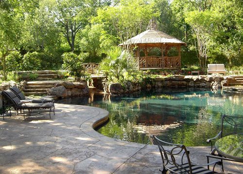 Gazebos have fallen out of favor in recent years. This is partly due to the fact that they don’t mesh well with modern styles of architecture, and also that few people are designing formal, highly-themed English or French style gardens. Gazebos have also gotten a bad rap because so many people use cheap-looking kits to build them, and don’t pay attention to placing them appropriately within the landscape. A dusty, unused gazebo in the middle of a suburban lawn does nothing to encourage others to explore the style. That said, a gazebo can be an elegant, refined choice in the right setting, given it’s built well and incorporated into the landscape in a seamless way.
