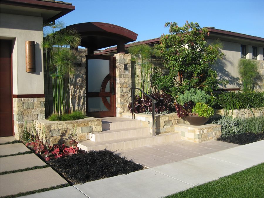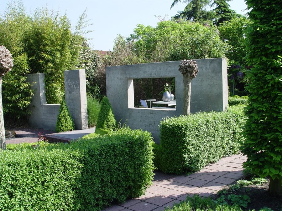 - Using concrete walls to create privacy in a front yard.