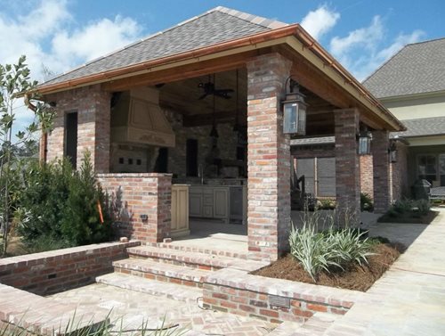 Brick is a time-honored material for paving patios, walkways, driveways and more. Red and used brick are the most common types used for residential hardscaping. Traditional bricks are made from clay that has been fired in the shape of a rectangular block. The average measurements of a brick are 4 inches by 8 inches by 2 ¼ inches, which is just about the right size and weight for a mason to handle using one hand. Brick paving has a custom look because it is laid by hand, one block at a time. Intricate patterns can be created by cutting bricks and laying them in a special fashion.