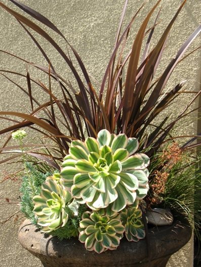 Ideas for non-thirsty plant combinations with high impactOne of the most common requests I get from my clients is: "I want year round color with little water and it must be low maintenance." My response is always, "No problem." This may seem like a difficult task to accomplish, and to most it is, but this is my specialty. This question excites me, it means I can exceed my client's expectations and create a beautiful, low water landscape and educate my clients on the importance of foliage color, texture and shape in plants.