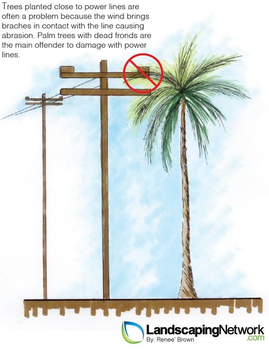 Abrasion is one of the key causes of damage to power lines, which is caused when wind moves tree branches back and forth where contacting the wires. This gradually wears away the insulating cover to eventually expose twigs to the bare copper wire. This can cause a short that can blow up a transformer or start a fire. The primary offenders are palm trees with dead fronds that contact the wires or poles. Even the slightest spark can lodge in the dry tinder of a palm and set it on fire.