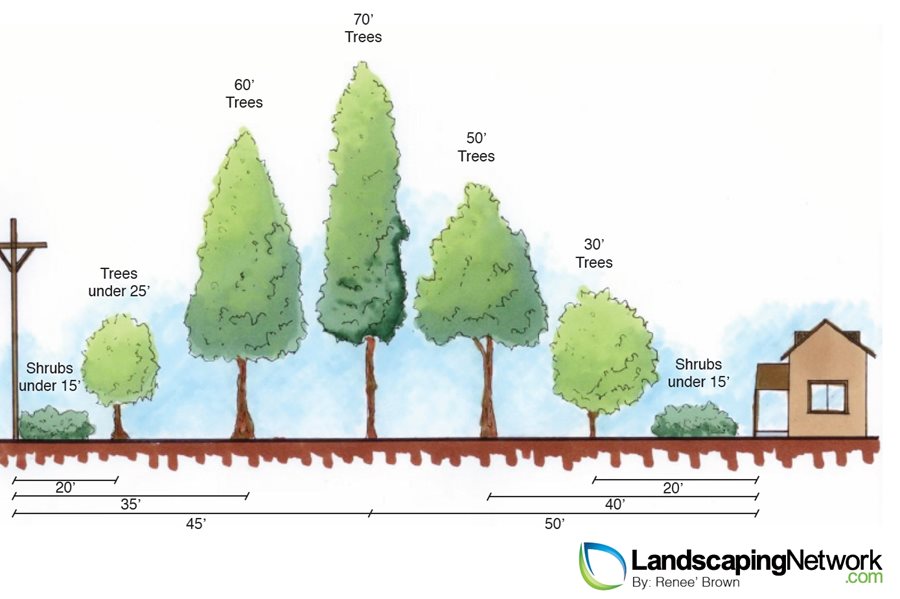Most power companies advertise their mantra: Don't Plant Under Power Lines. They must budget tremendous amounts of money each year to have old established trees pruned back due to interference. If they don't prune them, there is always a threat that your trees may cause damages that could end up costing you plenty. Also be fully aware of utility easements on your property which are provided in the event that overhead lines are one day undergrounded. Trees on or at this easement will be destroyed should this change occur.
