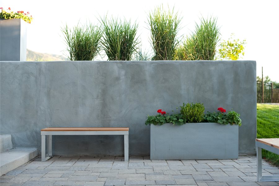 When designing the landscape Hansen focused on blending the family's Hawaiian inspiration with the home's architecture and interior design. "The exterior of the house is a Coastal style and the interior is very modern. Our goals were to make the inside and outside flow together and create a resort atmosphere," she says. Many small touches contribute to the vacation vibe in this backyard. Underwater pool lighting lends a soft glow to the landscape, while uplighting on containers and plants adds drama. Additionally, a large tile "W" representing the family name was inlaid into the pool's baja shelf. And a custom designed concrete fire table with cantilevered bench seating creates a poolside lounge environment.