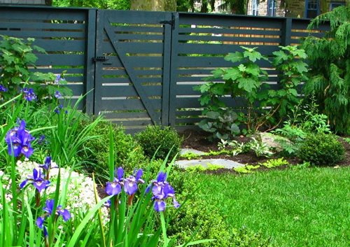 A new fence, with horizontal boards, provides a contemporary privacy solution.