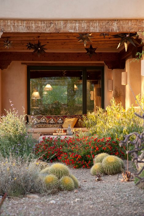 In general, native plants are going to be better-adapted to tough conditions, such as thriving with less water or tolerating the natural extremes of temperature in many regions. However, you can give your plants an advantage right from the start by choosing locally-grown specimens. "If someone grows an Arizona native in California, it's like the plants have been in a day spa," says Elizabeth Przygoda-Montgomery of Boxhill Landscape Design in Tucson, AZ. Even if you're starting with the exact same variety of plant, if you buy local, you'll see a difference in how soon you can cut off the water.