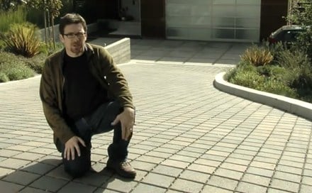 On this project, the homeowners wanted to incorporate as many green building techniques as they could into the project, and there are some site concerns about site runoff to the neighbors. So combining those two concerns, and with a driveway of this size, the thing that made sense to do was a permeable driveway. And there are different techniques for doing permeable driveways, but in this case, the most aesthetic and nicest solution seemed to be to do interlocking pavers that are designed for permeability. These are very popular right now. They seem to be the next big thing in interlocking paving. They're designed with gaps with infill with the granular base rock, and that allows the water to soak between the pavers into the base rock below.