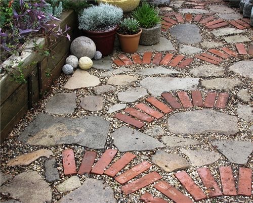 Stone: Flagstone and slate along with other rock can be placed apart with gravel or planting in between.