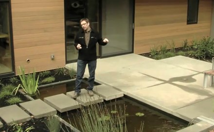 Construction detailsOne of the first things we had to do on this landscape project was to get this basin installed before any other hardscape elements went into place. So we came in here, we did the formwork, we laid in our piping, and then we poured this basin with the supports for these pads with a strong concrete mix (it was a 3,000-psi mix), and then we added a Xypex chemical additive to the mix that basically forms a crystalline structure within the concrete to make it waterproof. We also added black color to the concrete to give it a dark appearance so it wouldn't stand out too brightly once it's installed.