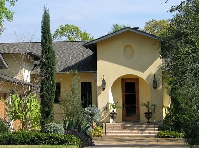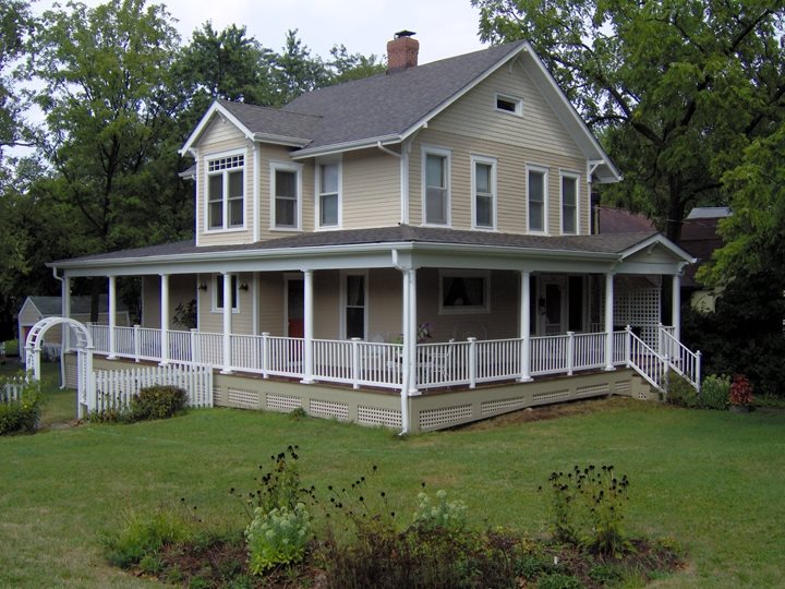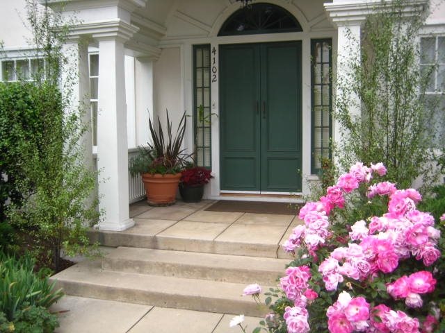 Whether you already have a porch or are planning on adding a new one, a front porch provides a great opportunity for landscaping. Container gardens can be placed flanking the steps or baskets of flowers can be hung from the porch roof. Climbing plants can be grown on the posts or over panels of lattice work to add privacy. For a more formal look, well-manicured topiaries can stand on either side of the front door.