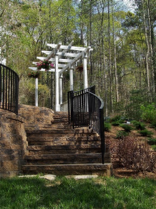 The homeowners had originally requested a straight run wall to replace a failing wood retaining wall. This would have left them with little to no (7') usable space. Instead, we suggested a curvilinear layout that would allow everyone to pass by without interrupting the relaxing atmosphere we were hoping for.