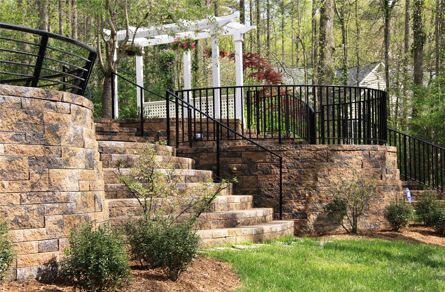 Material List:- Walls: Allan Block, Untumbled Abbey Blend stone in Sandstone