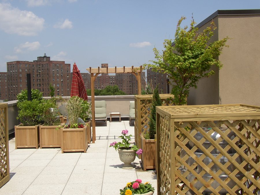 Buildings that offer residential balconies and terraces vary considerably in age, architecture and structural reinforcement. Your designer will be very conscious of how much weight your project will place upon the load bearing surfaces. The older the building the less weight the structure can support. For an extensive project, be prepared to budget an engineer's structural analysis and other requirements that may be required by the building owner or the city.