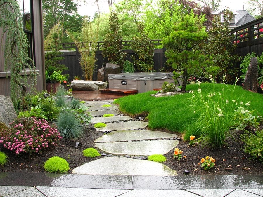 A private garden in the Pacific Northwest provides refuge and renewalFor centuries the Japanese have been creating gardens that serve as a place of refuge and renewal. The owner of this property in the Madison Park neighborhood of Seattle wanted to recreate this atmosphere at home. Stock and Hill Landscapes helped achieve this goal by artfully combining stone, water and plants, while addressing a need for privacy and the family’s desire for outdoor living space.