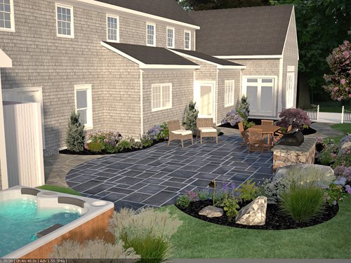 Christopher Jeffcote, with Captain’s Landscape Design & Build, recently had the opportunity to design a new outdoor living space for this quaint seaside home. The property had an existing patio that didn’t get much use. Read on for Christopher’s explanation of how he redesigned the patio to better serve the homeowners.