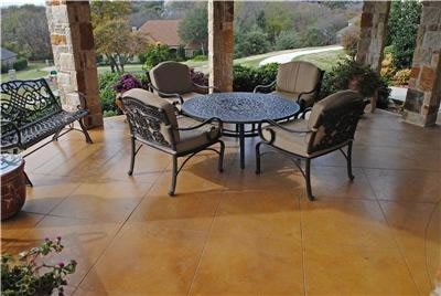 —Stained concrete is extremely durable and can withstand weather extremes and heavy traffic. Because the color penetrates the concrete, it will not wear away.