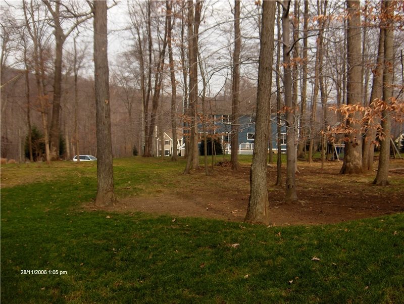 The yard before pool installation. The pool site was on the north side of the residence and had many trees that caused it to be very shady. "After we removed the trees, the space became much sunnier so we were able to plant buddleia (butterfly bush) in lieu of viburnums and fairy roses instead of ligularia," says Einhorn.