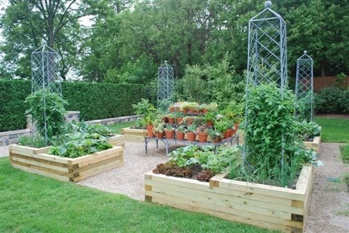 Edible garden areas like this one can be designed with as much flair as ornamental garden beds.