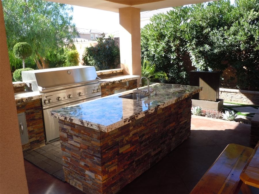 While dark stone counters are visually beautiful indoors, according to Whyte, they get too hot in the summer outdoors when not sheltered by an overhead structure. In general, dark stone absorbs heat during the day and may become difficult to work on where exposed to direct sun.