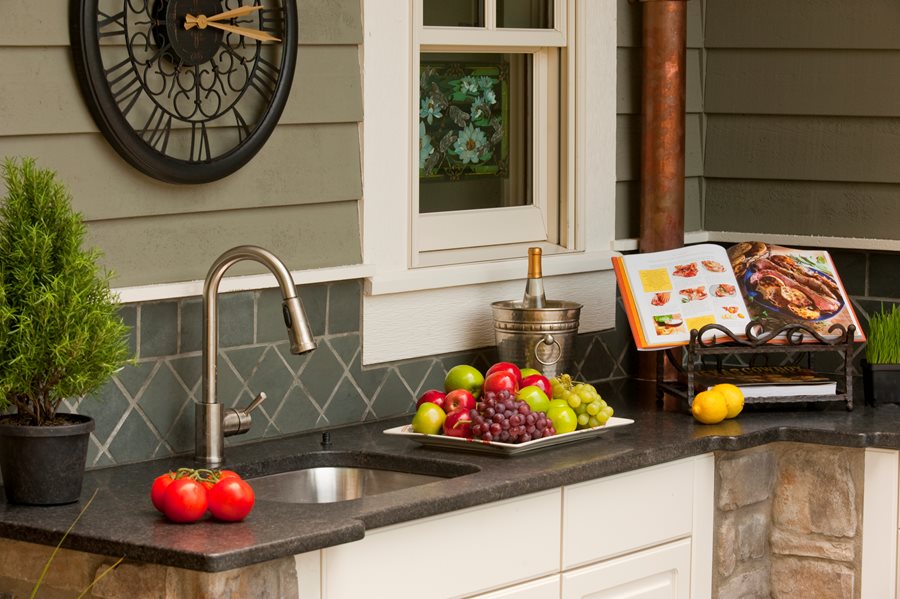 Some kitchens utilize very small sinks, but then become frustrated trying to rinse a dinner plate, much less a serving platter. Whyte often sees newer kitchens upgraded with larger sinks. If it's necessary indoors, it's equally important outside.