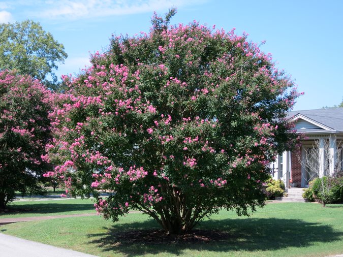 Flowering trees will give your front yard a welcome burst of color after a drab winter, often before the rest of your landscape comes to life. The effect is similar to putting a vase full of flowers in your front entry, providing a temporary but showy splash of color and an intoxicating fragrance. Many flowering trees also provide multi-season interest by producing colorful berries and vibrant fall foliage, such as flowering cherry trees, crape myrtles, crabapple trees, and eastern redbuds.