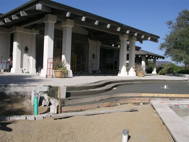 The new pool was built on top of an existing pool that was about 7 or 8 feet below the house elevation. Decomposed granite was used to backfill around the new pool and to build the raised garden. Drains installed in strategic places around the landscape will guarantee fast drainage in case of heavy downpours.
