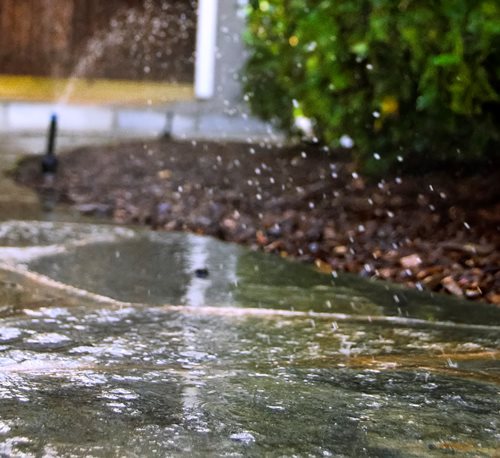 "Session Irrigation" = Water like rain. This term reflects the need (in clay soils) to irrigate "like rain," which is characteristically long and slow, an inch of rain occurring over several hours in a moderate storm. Typical pop-up spray-nozzle sprinkler heads used in residential landscaping apply an inch of water in only 20 minutes. That's the equivalent of a huge downpour or cloudburst! This often results in too much run-off as the lawn, and soils in some communities don't absorb the water fast enough. To improve water penetration, try something pros like golf course superintendants use called "session irrigation," several shorter watering sessions one hour apart. The time between watering allows for water to soak in deeper, encouraging deeper root growth and salt leach. Set your sprinkler timer to session-irrigate until about an inch of water is achieved, but only water as often as necessary. Remember, allowing the soil to dry between watering helps aerate the soil and encourage healthy deep root growth.