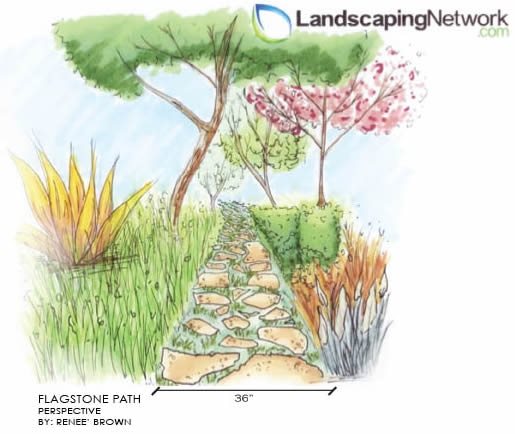 A design trick that many professionals use is to vary the width of a path at certain points in the garden. Widening a walkway suggests that the visitor has arrived at a destination. Good places to widen a path include when it is nearing a patio, when you would like people to stop and admire beautiful flowers or a breathtaking view, or when there is a nice shady bench to rest on under a tree.