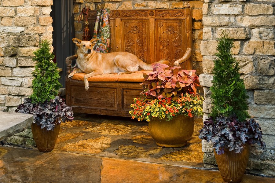 Colorful containers add immediate cheer