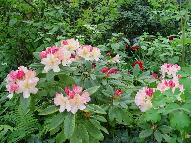 Rhododendrons, an evergreen shrub with broad leaves and showy flowers, are popular for adding winter interest.