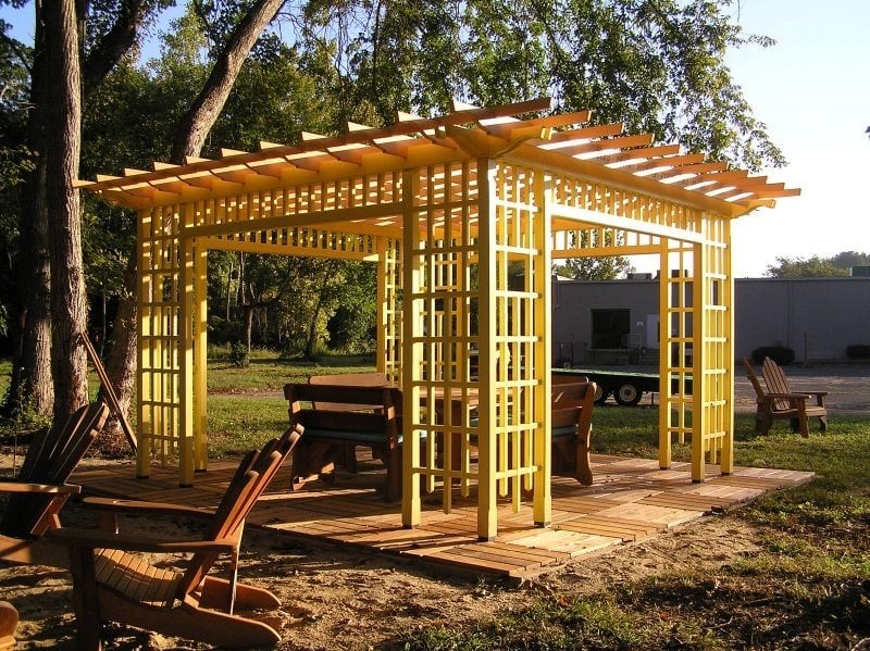 One of the most common types of wood used for pergola construction is pressure-treated pine. Pressure-treated pine, the most affordable option, is rot and insect resistant. However, a preservative will need to be applied after construction to slow the process of weathering. Pressure-treated pine can be stained nearly any color you like.